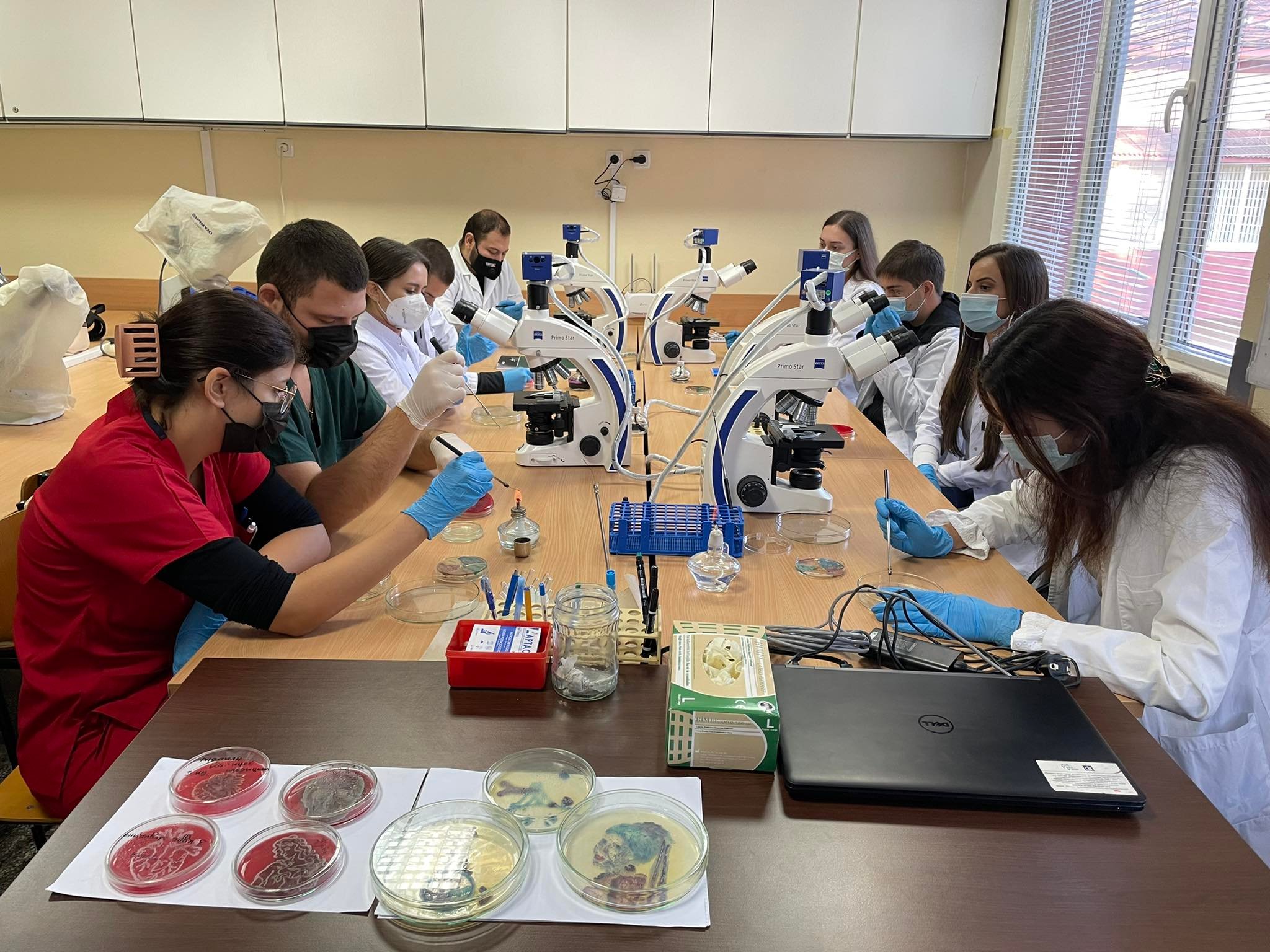 Студенти по медицина и фармация под менторството на асистентите от Катедрата по здравна биохимия, демонстрираха лабораторни опити за доказване на обособени аминокиселини и витамини. Учениците имаха опция да покажат своите умения в лабораторни условия.