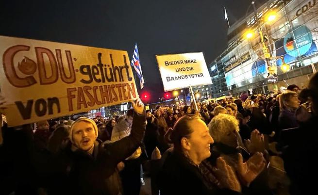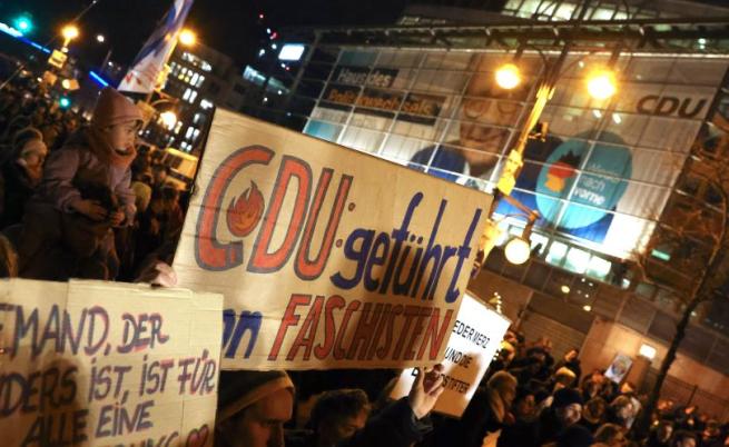Полицията заяви, че към 6000 души са се събрали на митинг пред националната централа на ХДС в Берлин, проведени от съюза „ Заедно против десницата “ под надпис „ Без съдействие с АзГ “.