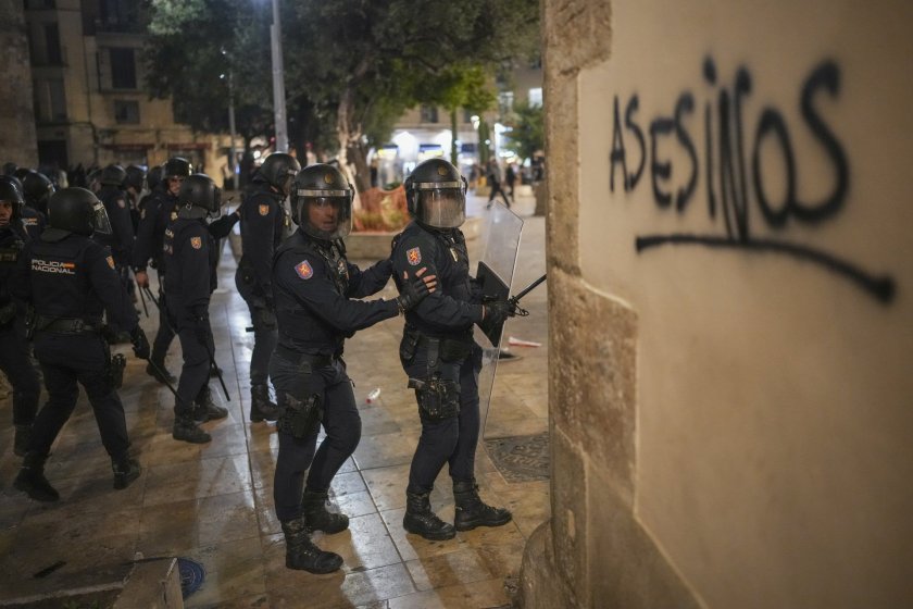 По време на снощната проява по отношение на наводненията протестиращите извършиха центъра на Валенсия, издигнаха искане за оставката на ръководителя на районното държавно управление Карлос Масон и скандираха " Убийци! ".