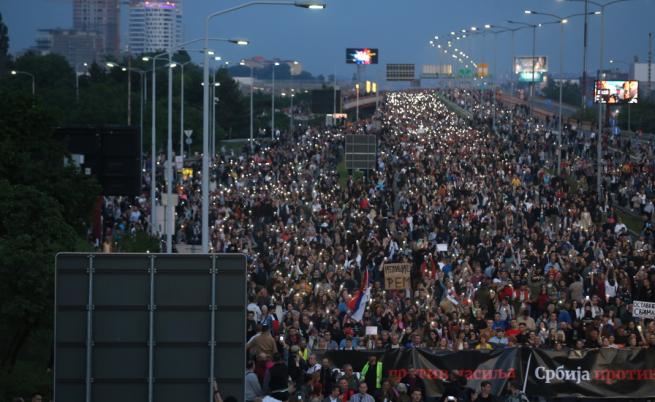 Множеството от хора блокира придвижването в центъра на града, парка Пионирски и автомагистралата в сръбската столица. На място имаше чиновници на сръбската полиция в цивилни облекла.