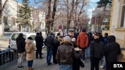 Десетки хора стачкуваха пред сръбското посолство в София в неделя.