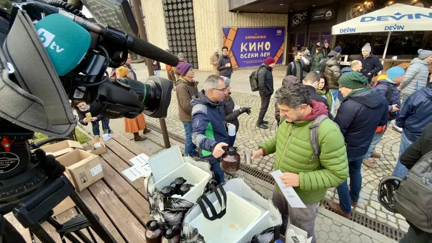 Десетки публицисти и жители се събраха тази заран пред постройката на bTV за „ протестно пиянство на кафе “. Поводът е решението на малкия екран