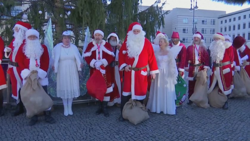 Десетки мъже, облечени като Дядо Коледа, се събраха пред Бранденбургската врата в Берлин, с цел да отбележат началото на коледния сезон.