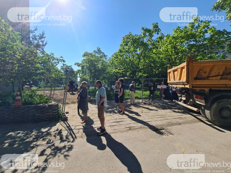 Десетки пловдивчани излязоха тази заран пред блока си, с цел да спрат строителните действия по създаване на паркинг и местенето на детска площадка в карето на ул. „ Тича” и ул. „ Брезовска”. Хората направиха жива верига пред камионите.