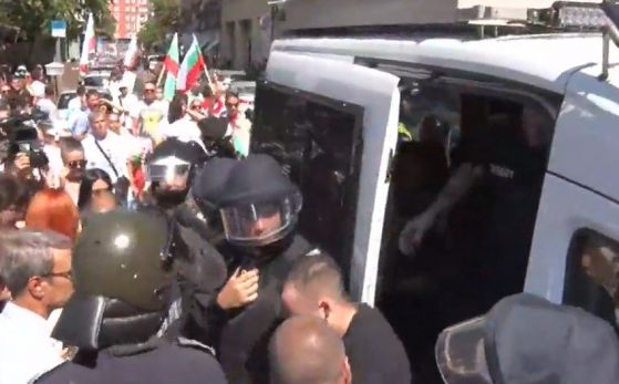 Протестът блокира полицейски бус на ул. Леге, в който има задържан |