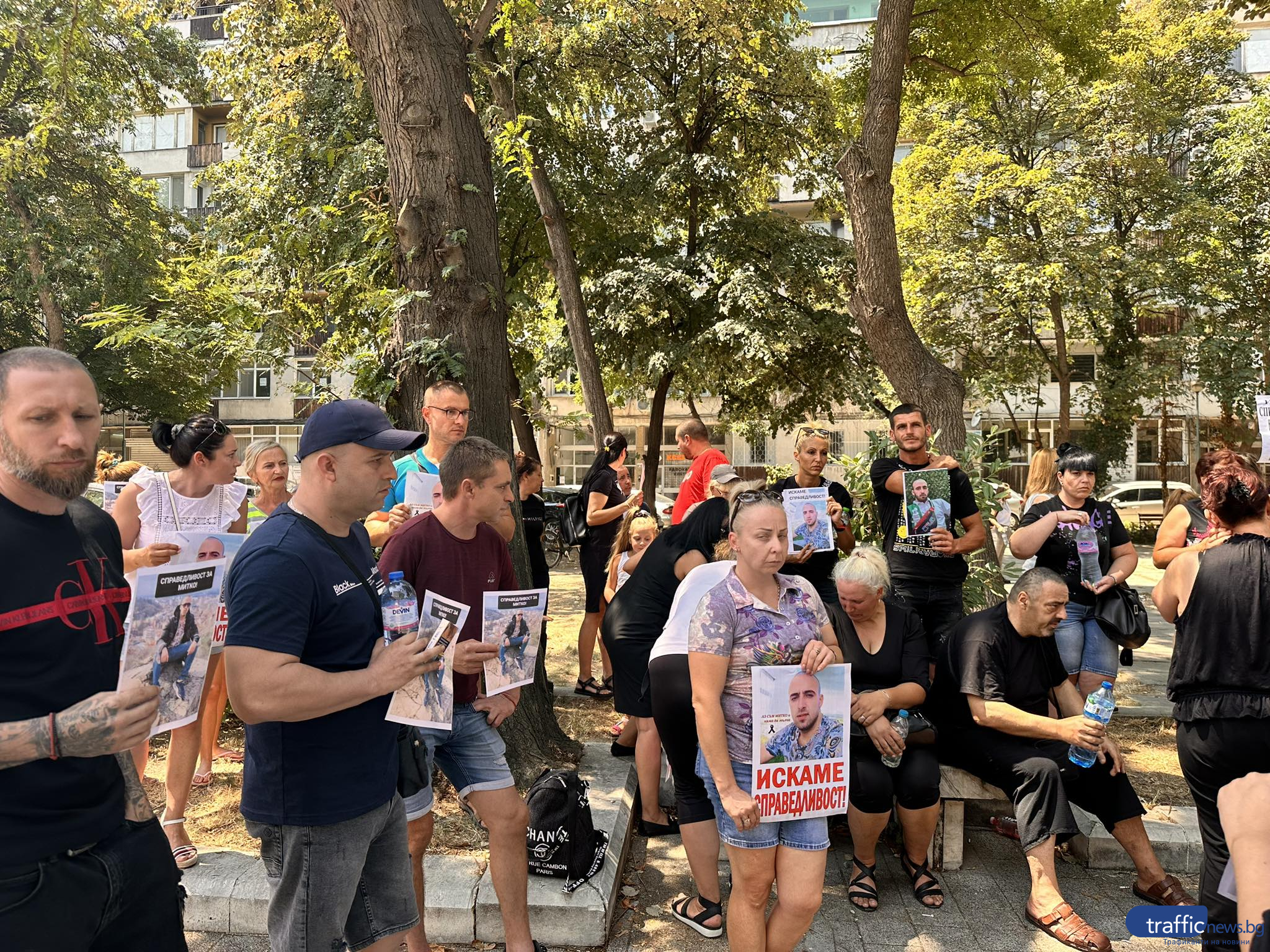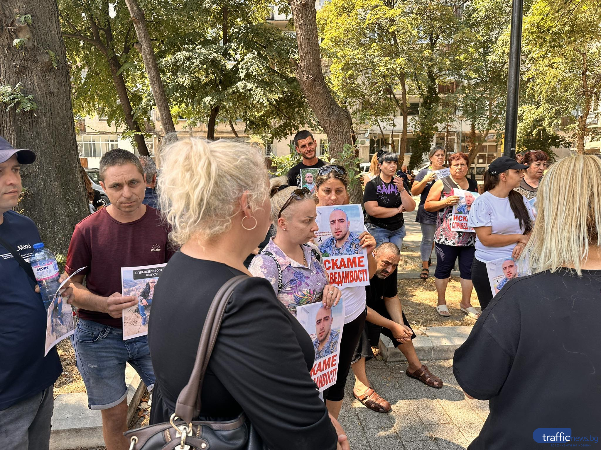Десетки протестиращи се събраха пред Съдебната палата в Пловдив малко преди да бъде прегледана мярката за неотклонение на 19-годишните близнаци Борислав и Валентин Динчеви. Двамата бяха привлечени като обвинени за персонално укривателство по отношение на жестокото ликвидиране на Димитър Малинов от Цалапица.
