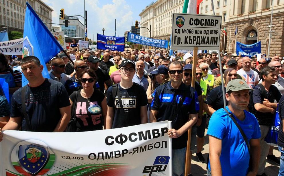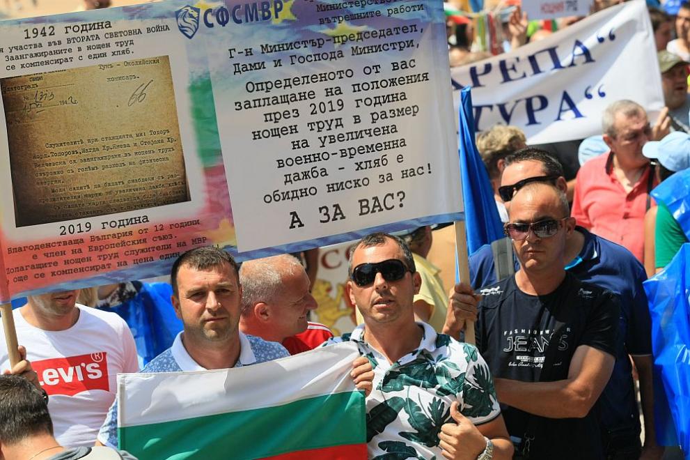 Десетки чиновници на Министерство на вътрешните работи се събраха пред постройката на Министерски съвет на митинг за по-високо възнаграждение на нощния труд.