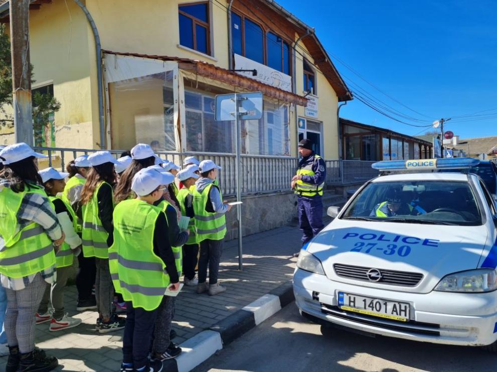 Облечени със светлоотразителни жилетки и на безвредно място в града децата се научиха да разграничават униформите, отличителните знаци и помощни средства на чиновниците на реда.