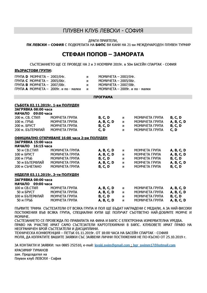 Деца и подрастващи плувци от четири възрасти ще вземат присъединяване в 21-ото издание на интернационалния шампионат по плуване „ Замората “, който ще се състои на столичния басейн „ Спартак “ на 2-3 ноември.