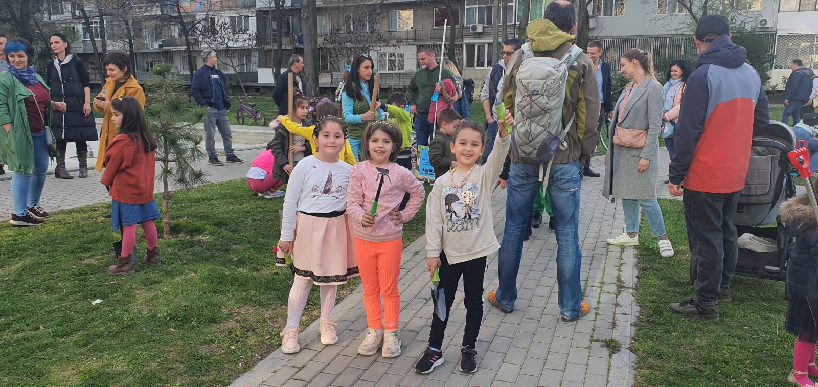 Децата се забавляваха и бяха радостни, че дават живот на дръвчета.