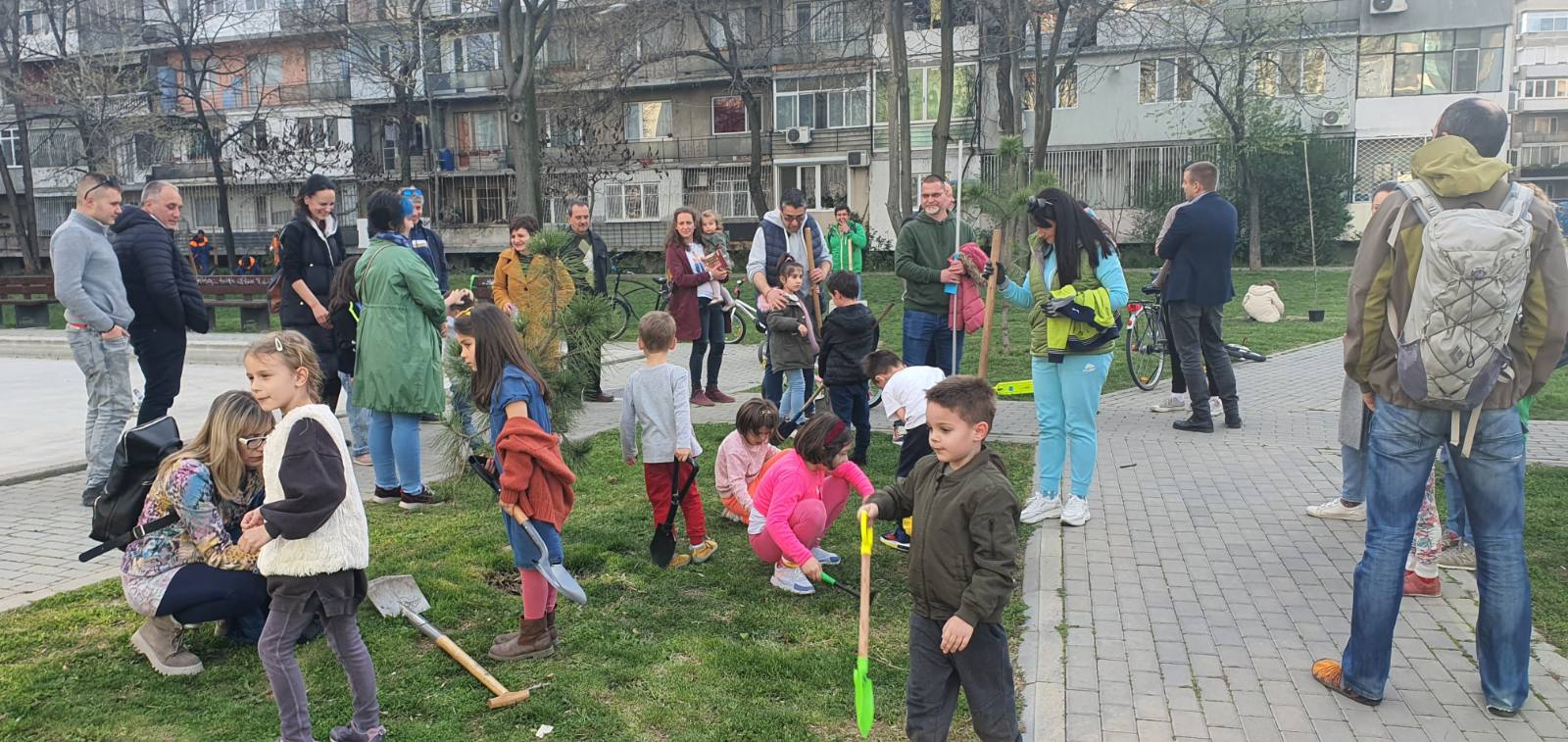 Деца от ДГ Майчина грижа Пловдив засадиха дръвчета в новия парк наоколо до светофара на бул. " Източен " и бул. " Мария Луиза ".