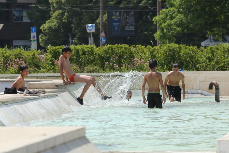Деца се разхлаждат във фонтаните пред НДК, уловени от фотообектива на БГНЕС.