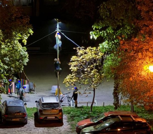 Група малчугани са снимани край площадка в столичния " Мусагеница ". Две момчета самоуверено се катерят по висока улична лампа, употребявайки ръце и крайници, до момента в който останалите от групата с забележим интерес следят " акцията ".