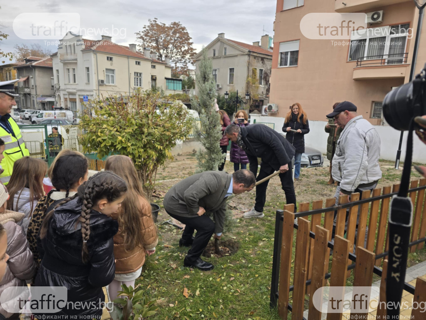 Децата получиха скъп урок и за грижа към околната среда, като незабавно след акцията те станаха очевидци на засаждането на два сребристи тиса, които ще порастват до основната алея в градската градина против постройката им.