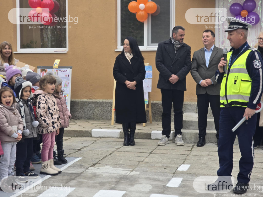 Инспектор Петър Стоянов от " Пътна полиция " на собствен ред изпита децата дали познават знаците. Малко по-късно дребните му демонстрираха познанията си по вярно секване на пешеходна пътека.
