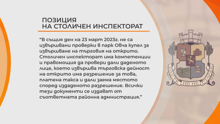 Кметът на регион " Овча Купел " отхвърли да разяснява тематиката. От Столичния инспекторат обявиха за Българска национална телевизия, че в същия ден, когато е закупен балонът, не са осъществявани инспекции за търговия навън в парк " Овча купел ".