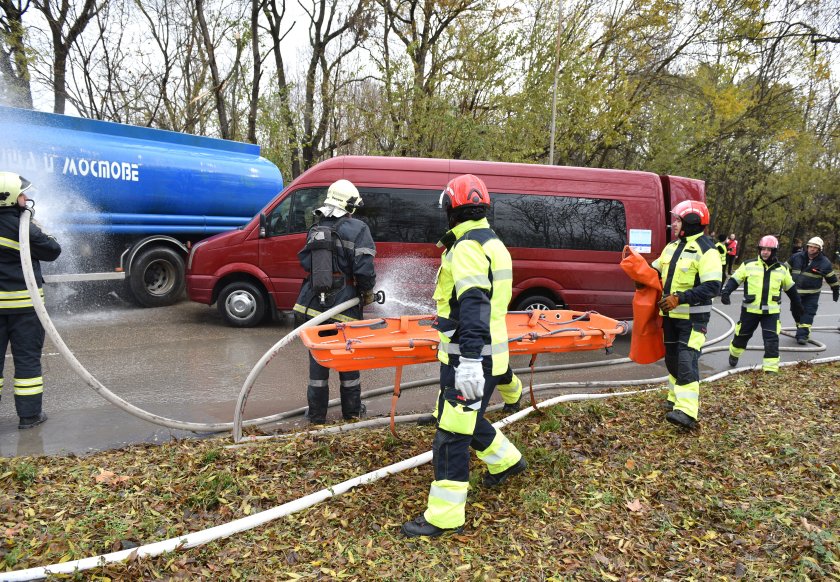 Девет институции, включени в единната избавителна система, участваха през днешния ден в обучение за превъзмогване на последствията от тежка злополука сред цистерна с 20 тона гориво и микробус със 17 пасажери. Според сюжета случаят стана напълно покрай Варна, а по-тежко потърпевшите бяха четирима. Освен това от цистерната изтече гориво.