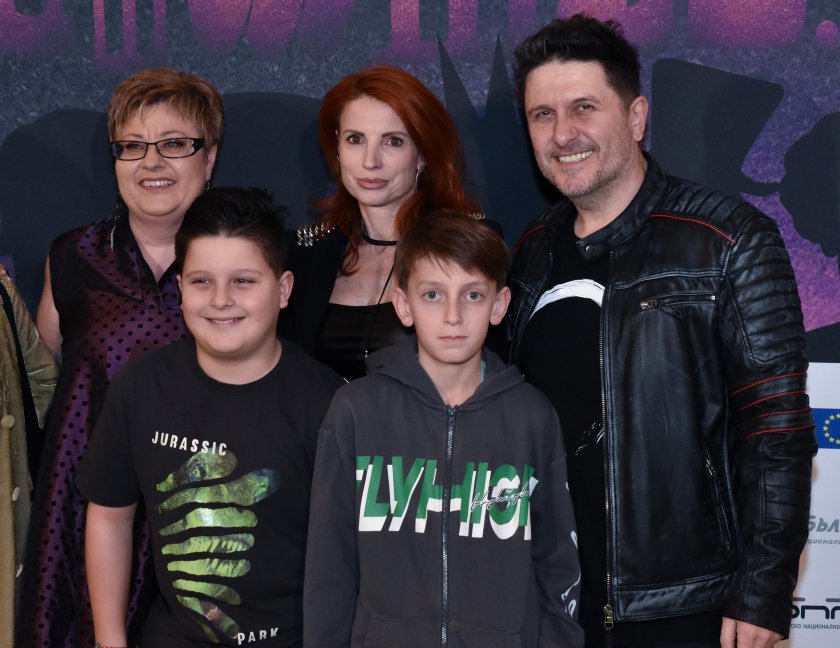 Асен Блатечки със сина си Борил (момчето с черната тениска), настоящата си половинка Елеонора Янакиева и Катя Василева (вляво)