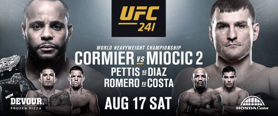 UFC 241 ще се организира на 17 август 2019 година в Анахайм, Калифорния. Главното събитие на вечерта ще бъде Кормие против Стипе Миочич за купата в тежката категория на UFC. Подгряващата среща ще се изиграе сред Нейт Диаз и Антъни Петис в полу-средната категория.
