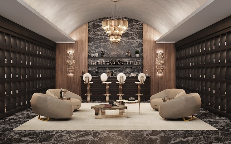 За разлика от хола, трапезарията е доста по-голяма, въздействаща с прелестните си мрамори както на пода, по този начин и по стените.На първия етаж има и зона за празненства с празненство бар, насърчаваща желанието за наслада и развлечение. Мраморът с големи бели „ вени “ на пода и съчетанието на кожа, дърво и месинг са първокласната рамка, в която изпъква основният воин на помещението – осветената със светодиоди „ библиотека “ за скъпи виновност.