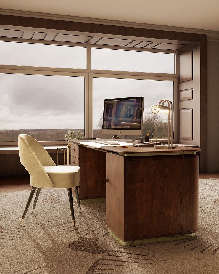 Офисът е от значително значение в къща, в която притежателят ще работи отдалечено. Помещението е проектирано и обзаведено по този начин, че в него по едно и също време да може да се работи интензивно, само че и да си разреши човек уединения и съкровен миг на четенето на книга. Библиотеката, бюрото и декоративните стенни панели основават прочувствената връзка сред минало и настояще.На втория етаж е и спалнята с богати и разнородни текстури, загатващи за разкош и комфорт.