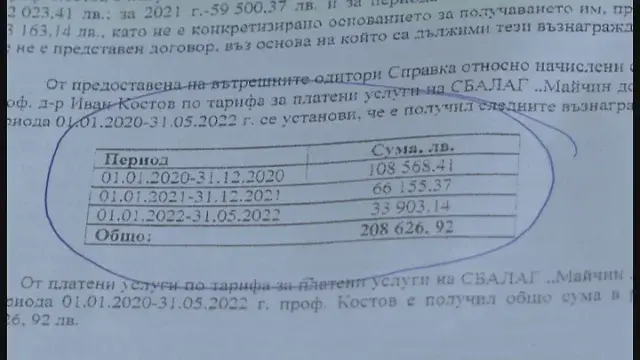 В сигнал до bTV лекари от болница Майчин дом оповестиха, че разполагат с одитен отчет, от който излиза наяве, че изпълнителният шеф Иван Костов е получил над 1 707 000 за две години и половина. bTV също разполага с документа.