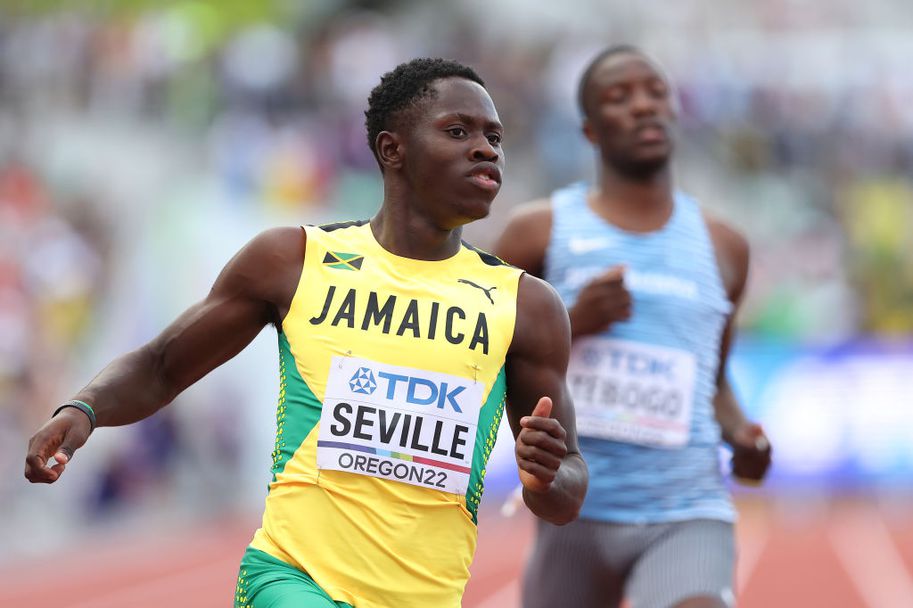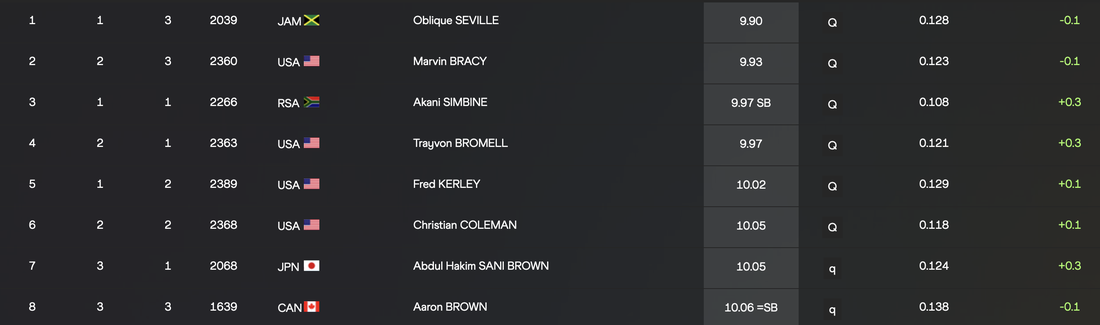 С първи резултат за финала на 100 метра при мъжете се класира ямаецът Облик Севиле с 9.90 сек.