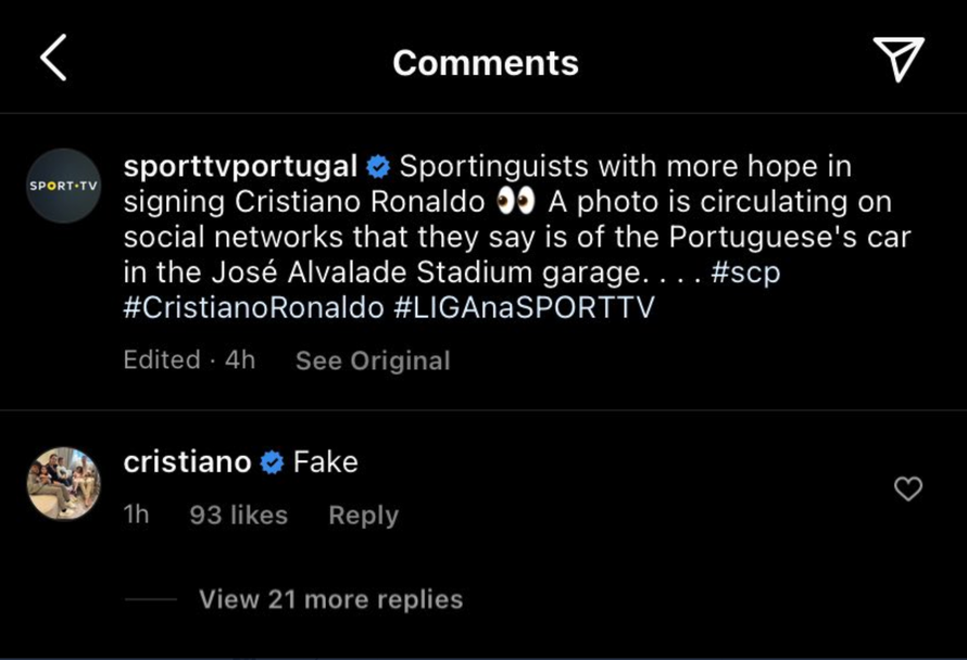 Кристиано Роналдо реагира на спекулация в социалните мрежи