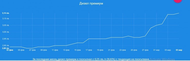 Дизелът през днешния ден мина 3 лв. за литър, демонстрират публични данни на уеб страницата fuelo.net. От графиките ясно се вижда, че в рамките единствено на няколко дни горивото се е вдигнало фрапантно и няма трендове да понижава.