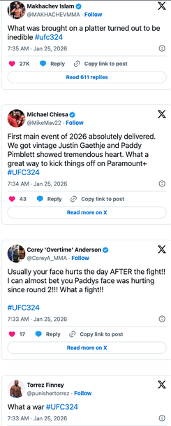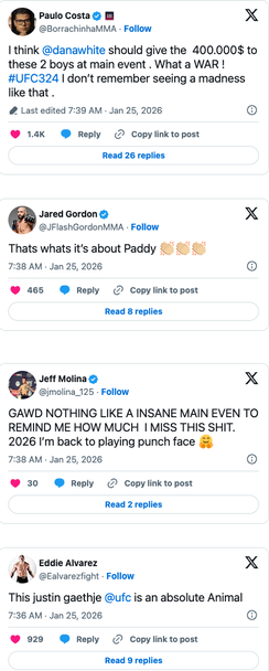 По-голямата част от бойците, които разясниха дуела онлайн в обществените мрежи, бяха извънредно положителни. Въпреки това, пенсионираната звезда на UFC, Дъстин Порие, насочи нещо като двузначен комплимент към Пимблет.