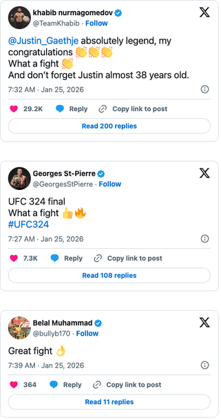 Не всички обаче бяха толкоз впечатлени от основното събитие в събота. Бившият първенец на UFC в тежка категория, Джош Барнет, го дефинира като „ едно от най-лошите основни събития в UFC от много време “.