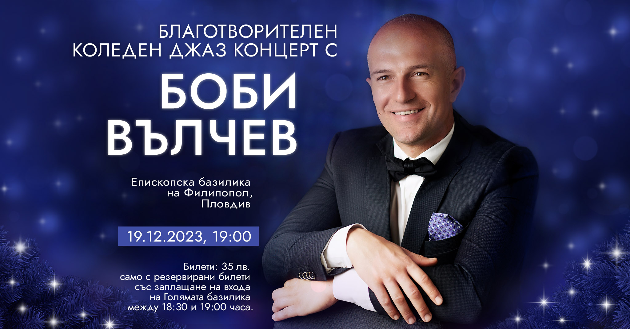 Джаз музикантът Боби Вълчев се завръща в България, с цел да изнесе нов концерт с благотворителна идея. Това ще се случи на 19 декември в Пловдив. Каузата е закупуване на нови музикални принадлежности на надарените деца от Ансамбъл ударни принадлежности “ПРЕСТО ”. Концертът в навечерието на Коледа ще се организира в Епископската базилика на Филипопол (Голямата базилика) от 19:00 часа.
