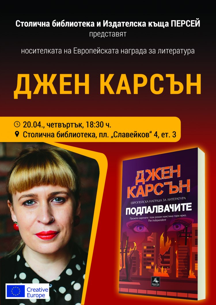 Джен Карсън идва в България, с цел да показа отличения си с Европейската премия за литература разказ „ Подпалвачите “.