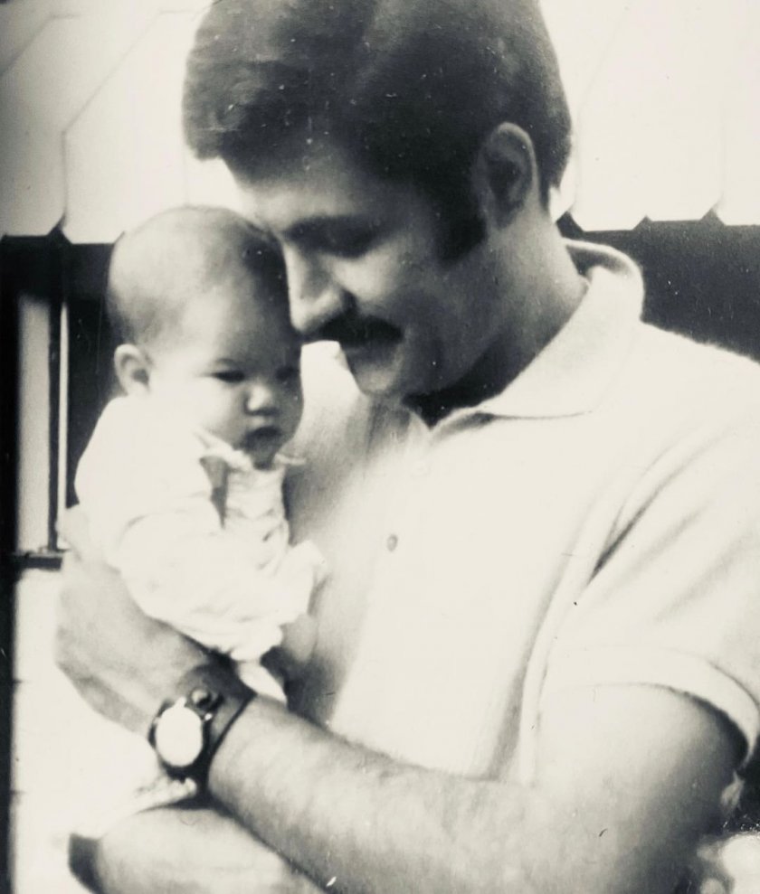 1970 година Бащата на Дженифър Анистън я държи в ръцете си