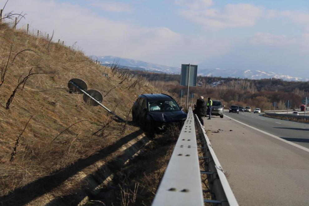 Джип с гръцка регистрация удари микробус и изхвърча от мантинелата на Автомагистрала " Струма ".