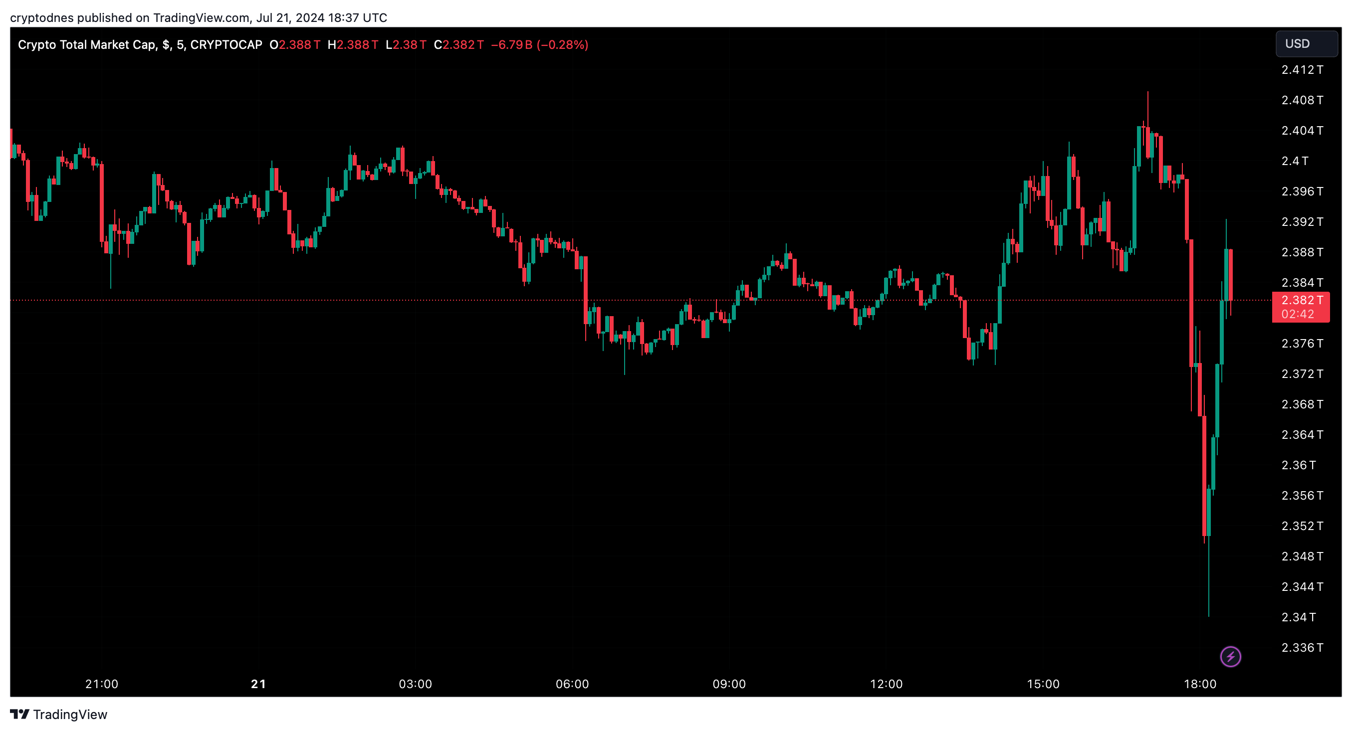 През последните 24 часа общата пазарна капитализация на криптовалутите спадна с 1.74% до $2.41 трилиона.