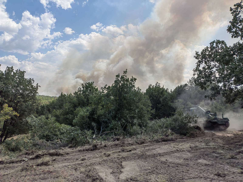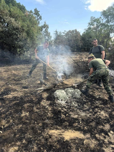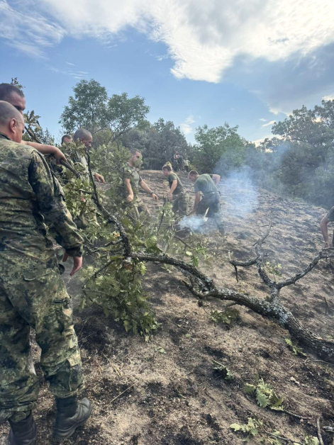 След 04.30 ч. се включиха общо 19 военнослужещи с 3 единици техника от състава на Центъра за подготовка на експерти – Сливен на Сухопътните войски – за гасене на пожара в региона на село Воден, област Ямбол.