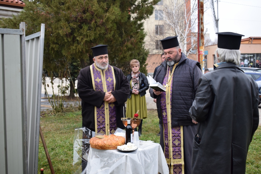 Отец Иван Плещов, ръководител на настоятелството към храма, дружно с отец Стоян Стоянов и отец Серафим Мишев отслужиха молебен за здраве във връзка започването на строителните работи.