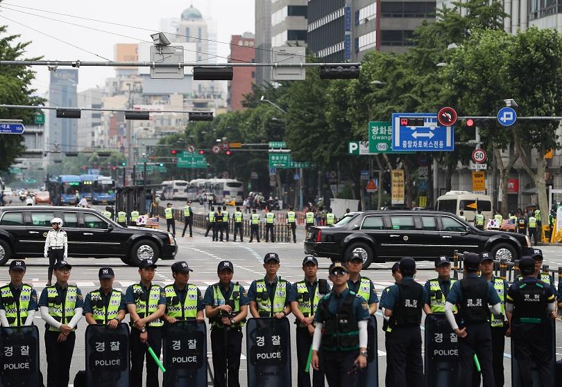 Американският президент е на посещаване в Южна Корея, където беседва с сътрудника си Мун Дже Ин и с корейски бизнес водачи. Пред тях Тръмп предложения Ким Чен Ун на среща в демилитаризираната зона, а севернокорейският водач е приел поканата.