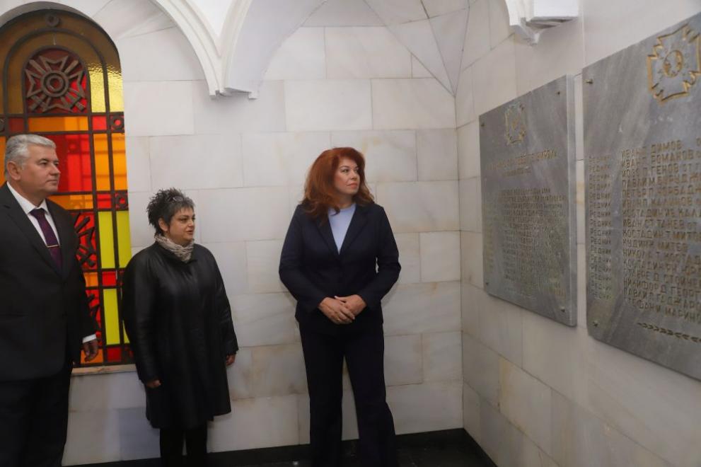 В Смолян вицепрезидентът отдаде респект пред паметника на полк. Владимир Серафимов. „ Смелост и мъжество - това е образецът на полк. Серафимов към днешните политици и държавници. Той отхвърли генералския скиптър, тъй като по-ценни за него бяха признанието и любовта на хората. Той е знак на смелост и невероятна любов към родината “, посочи Илияна Йотова и прикани по-често да препрочитаме тези уроци.
