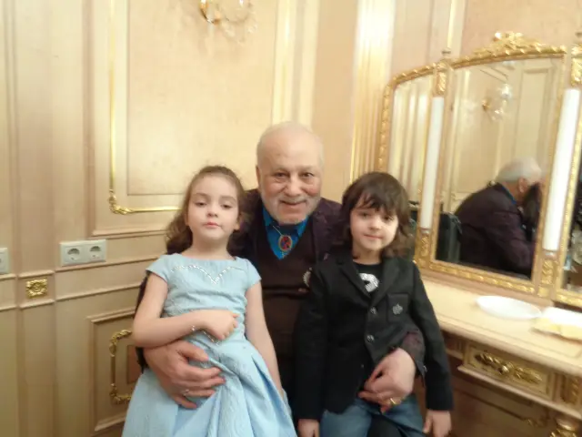 През април 2017 година Бедрос ме предложения на юбилейния концерт на Филип в Москва. Ще вметна, че съм по-голяма от Филип Киркоров тъкмо девет дни. Отидох на концерта, Бедрос подреди да ме прекарат през ВИПа, дадоха ми длъжностен бадж, седяхме с него и с родата на първия ред, а концерта беше както постоянно гръмък. Но преди този момент Бедрос ме предложения в една от гримьорните където седяха неговите внуци Алла-Виктория и Мартин. Сподели ми, че е благополучен, че ги има. Децата седяха пред огледалото и хапваха нещо, а той им се скара да не ядат открита застояла храна, само че те продължиха и радостно се смееха на дядо си. Заснех ги...Бедрос с горделивост ми сподели тогава: " Покажи на България моите внуци! "