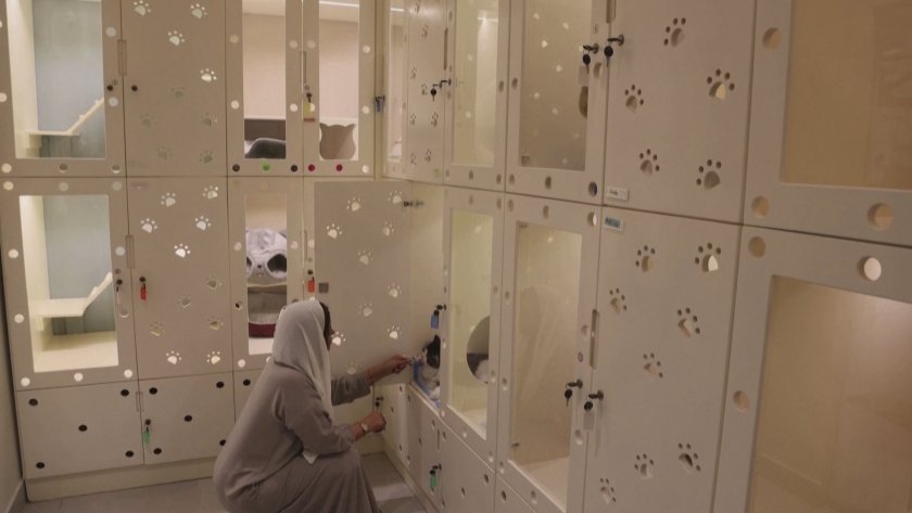 Собствениците на този котешки интернат в Рияд оферират грижи и внимание на животните, които стопаните могат да следят със особено приложение. Има и непрекъснати пухкави жители, с които всеки фен на котки може да си играе.