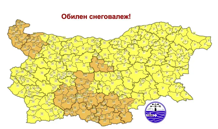 В северозападните елементи на страната, Предбалкана и по високите полета на Западна България преваляванията ще са от сняг. С напредването на деня дъждът ще премине в сняг и в Централна Северна България и Лудогорието. По планинските проходи на Стара планина, както и по високопланинските пътища в Южна България, се чакат навявания и виелици.