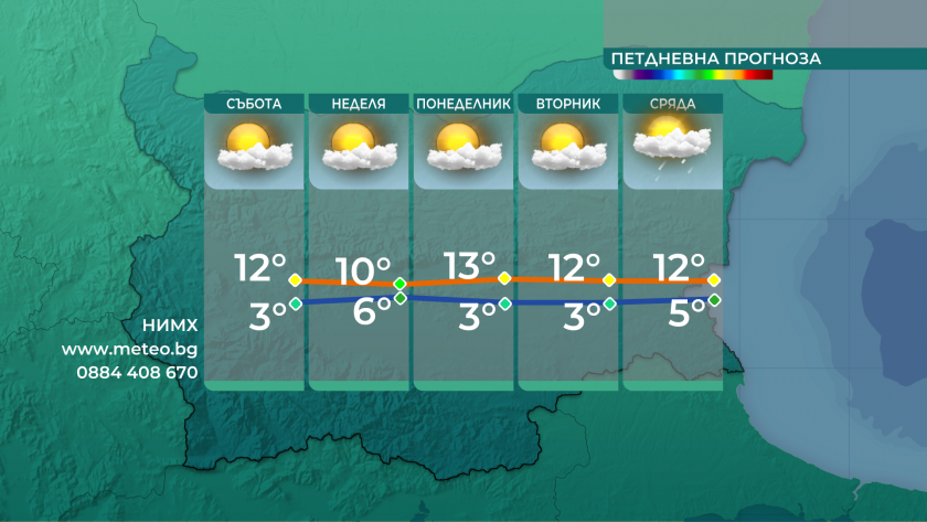 В средата на седмицата югозападният вятър ще се смени със северозападен, с него бързо ще нахлуе по-студен въздух и ще стартира захлаждане. През нощта против четвъртък на доста места от запад на изток ще превали, като с понижението на температурите дъждът ще минава в сняг.
