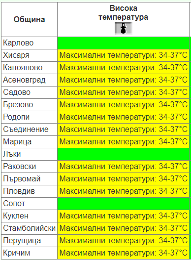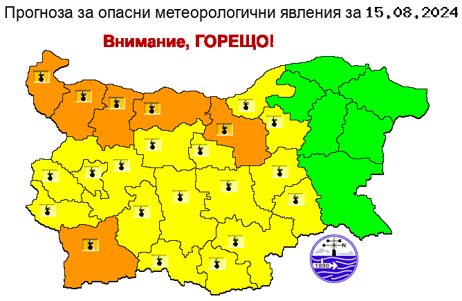 Отново има издадени предупредителни кодове за рискови горещини: