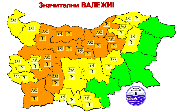 За цяла Област Пловдив е разгласен сигнален жълт код за обилни превалявания.
