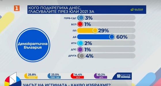 Кого поддържаха през днешния ден гласувалите през юли за Демократична България: