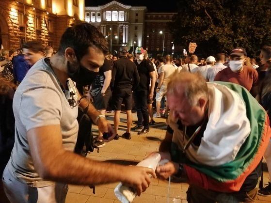 Въпреки драконовските ограничения за сигурност, откакто стана мрачно се оказа, че измежду протестиращите има и такива, които, неизвестно по какъв начин неусетно от полицията и жандармерията, са съумели да дойдат с цялостен боеприпас от бомбички. Полицаите пред входа на партийния дом бяха подложени на същинска канонада от фойерверки.