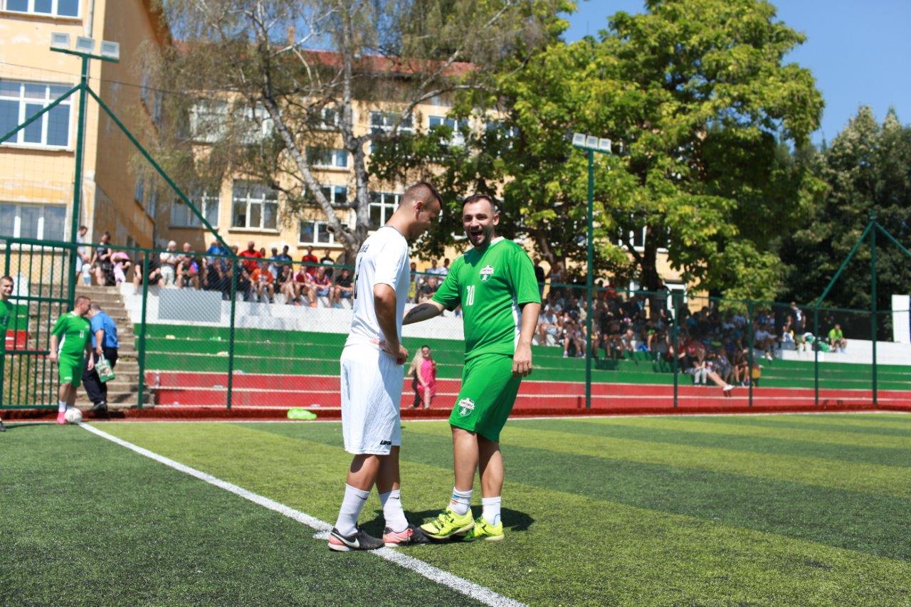 Тъй като футболните терени са планувани за футбол, незабавно след откриването на игрището започва демо мач с присъединяване на два сборни тима, формирани от „ насладата на народа “ Божидар Искренов, именития български вратар от Световното ’94 Пламен Николов, медии, „ Каталунците Кирчево “ и другари на момчетата от района. Капитанът на тима Юли Дермански и голмайсторът Йосиф Шутев припомниха една позабравена традиция и дефинираха тимовете с „ сцепване “, в което Йосиф настъпи Юли и избра Гиби като първо попълнение към своя тим. Юли пък заложи на Пламен Николов. „ Това май е единственият път, в който „ каталунци “ ще играят едни против други “, разясниха феновете с отпратка към дългогодишното им футболно другарство, което се отрази и на резултата в демонстративния мач – 2:2.