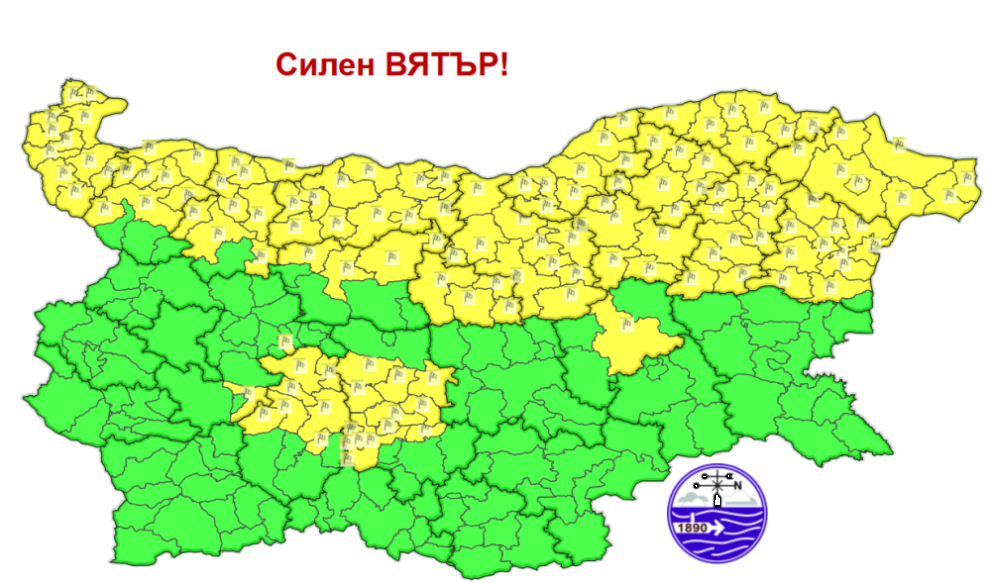 Жълт код за плевел вятър в 17 области у нас е разгласен от Националният институт по метеорология и хидрология.